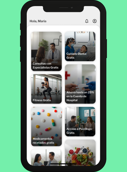 Acceso gratuito a especialistas, medicamentos, psicólogo, nutriólogo, limpiezas y tratamiento de emergencia dental, chequeos médicos y más – todo incluido.
